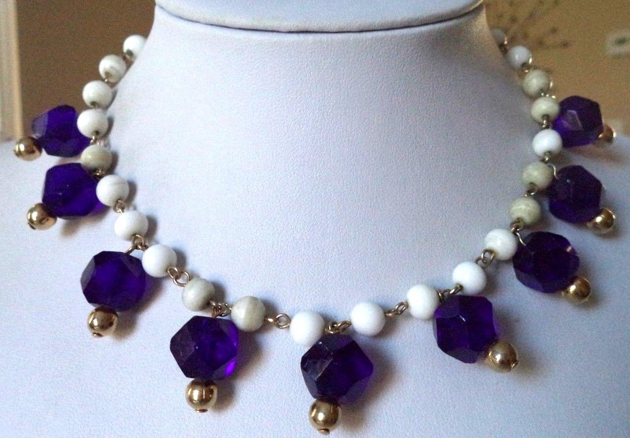 Title (ebay affiliate link): STUNNING VINTAGE ESTATE HIGH END BLUE & MILK GLASS BEAD 16 1/4" NECKLACE! G286V