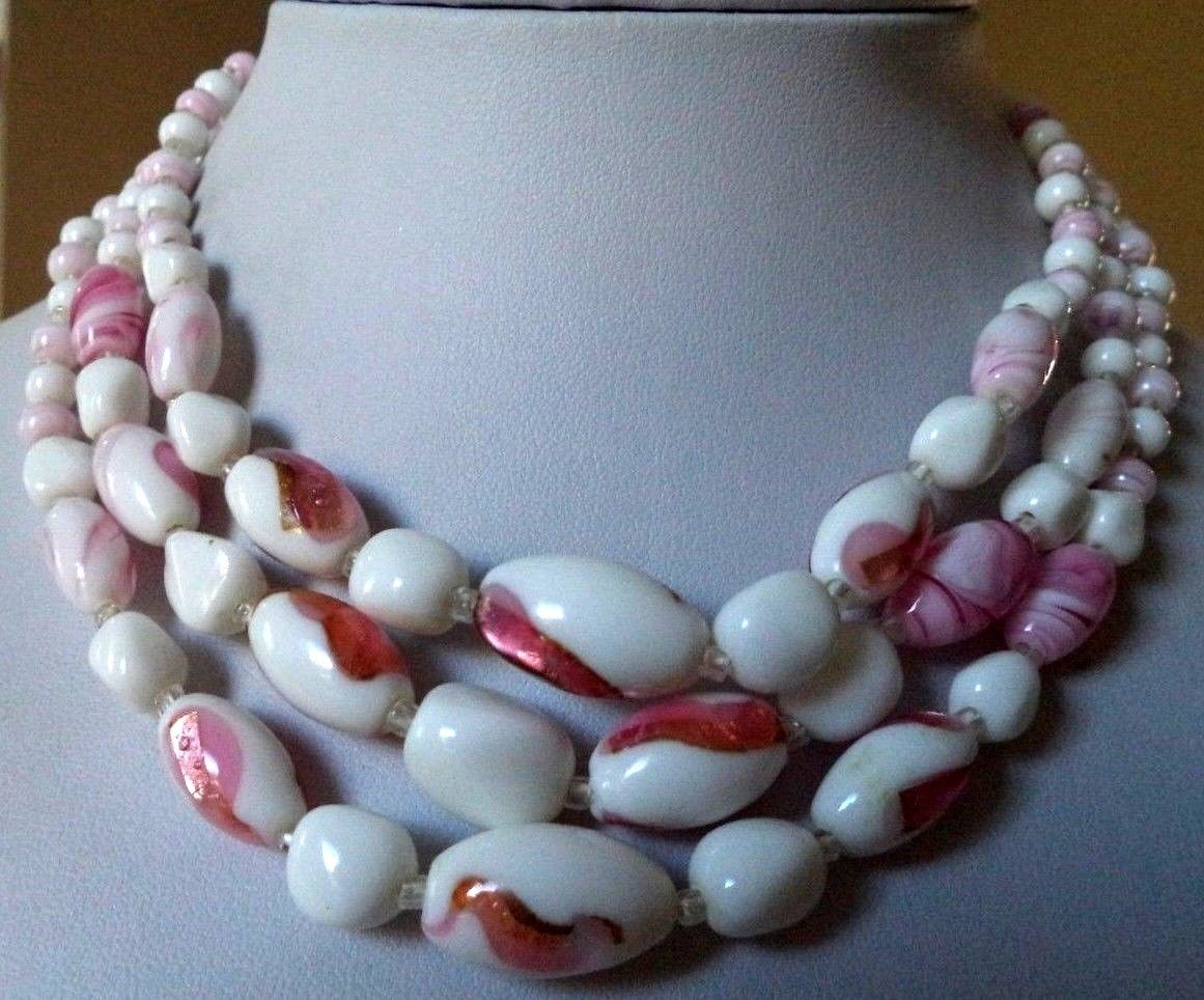 Title (ebay affiliate link): VINTAGE HIGH END SIGNED JAPAN PINK & MILK GLASS SWIRLY 16 3/4" NECKLACE!!! 1737N
