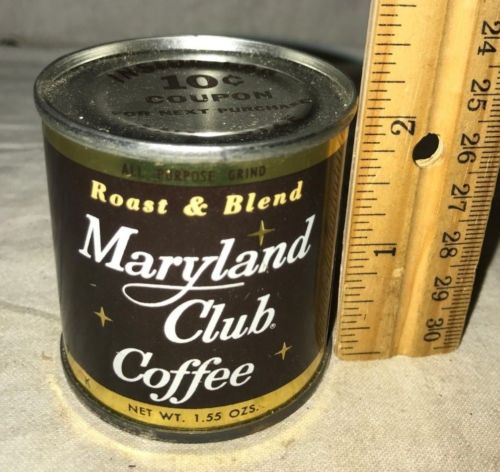 ANTIQUE MARYLAND CLUB COFFEE TIN LITHO SAMPLE CAN VINTAGE COCA COLA HOUSTON TX