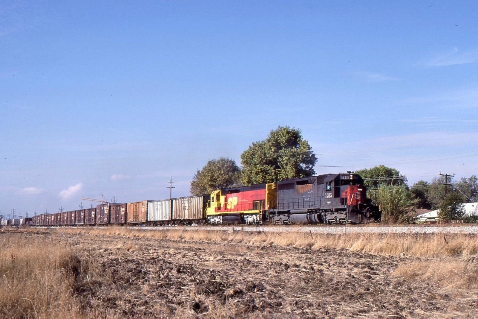 Title (ebay affiliate link): Original slide-Southern Pacific SD40R #7315 & Train/ Suisun,CA.1987-Nice!