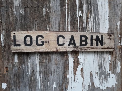 Title (ebay affiliate link): Old early Primitive antique farm chippy Barn white wood LOG CABIN sign snow