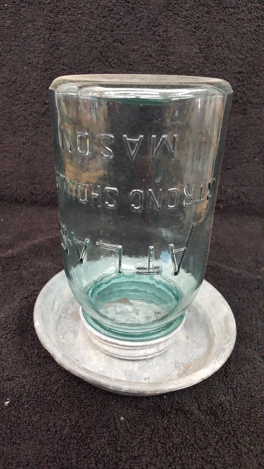 Small Chick or Chicken Water with ATLAS qt. green fruit jar top Farm Livestock