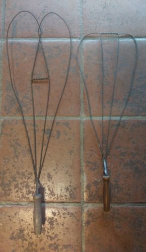 2 VINTAGE WOOD HANDLE WIRE RUG BEATERS!