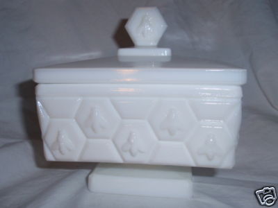 Vintage FENTON Milk Glass Honeycomb / Bee Candy Dish