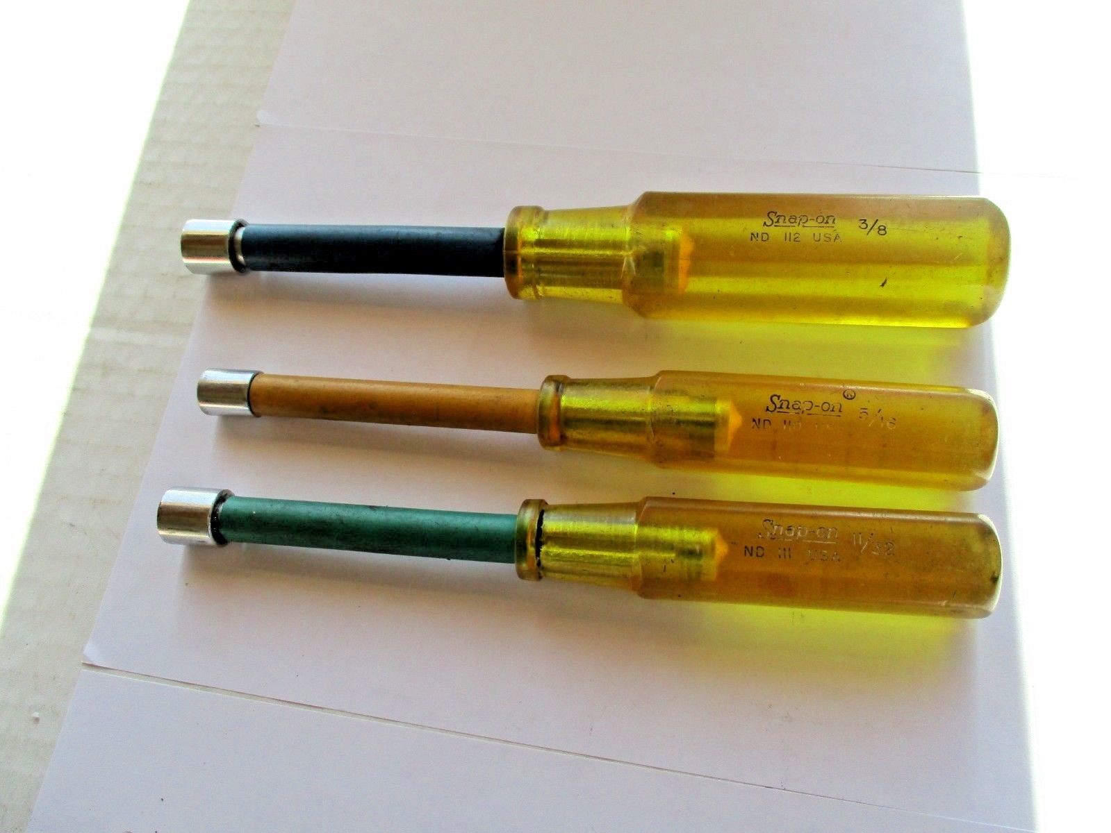 VINTAGE SNAP-ON NUT DRIVER, LOT OF 3- 5/16", 11/32", 3/8"- ND 110, 111, 112
