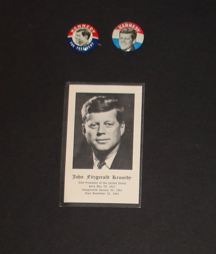 Title (ebay affiliate link): John F Kennedy Campaighn Pins and Death Memorial Card.