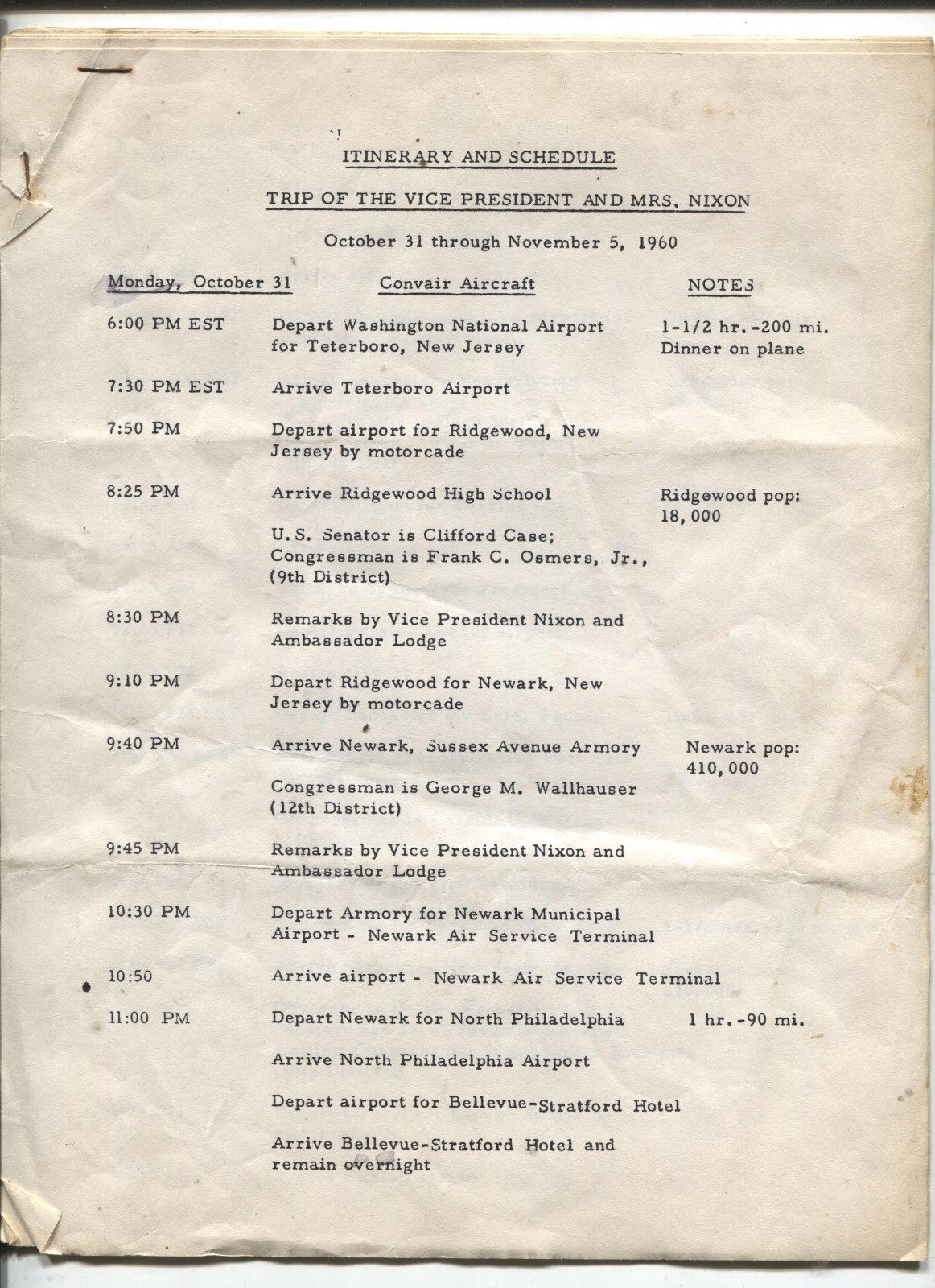 Title (ebay affiliate link): Itenerary and Schedule for Richard Nixon campaign November 1960