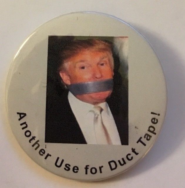 Title (ebay affiliate link): Sarcastic 2 1/4" Another Use of Duct Tape Anti-Trump Political Pin