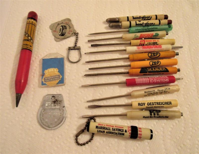 VINTAGE ADVERTISING SCREWDRIVERS PENCILS KEYCHAIN PLUG GAPPER TOOLS PROMOS ETC..