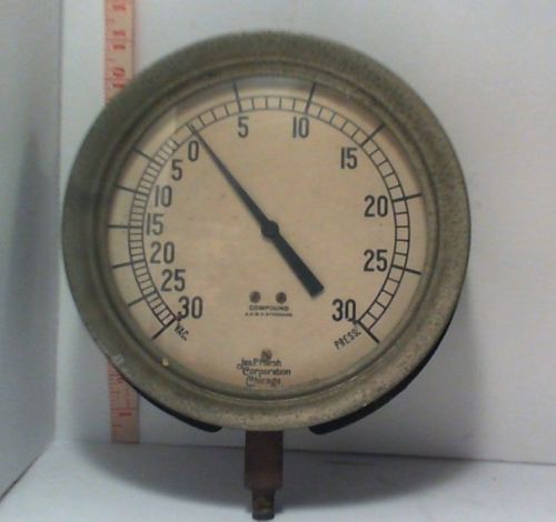 Title (ebay affiliate link): Large Antique Brass & Cast Iron Jas. P Marsh pressure vacuum steampunk gauge