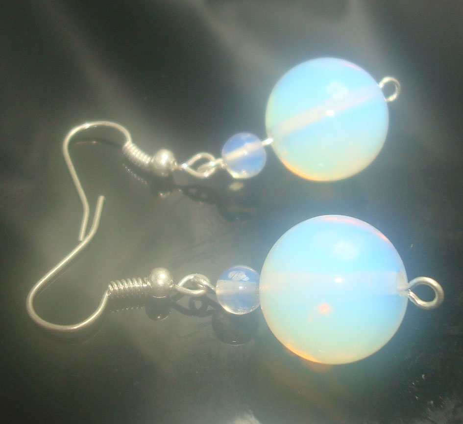 New, Milk White, Crescent Stone Beads 14MM, Earrings