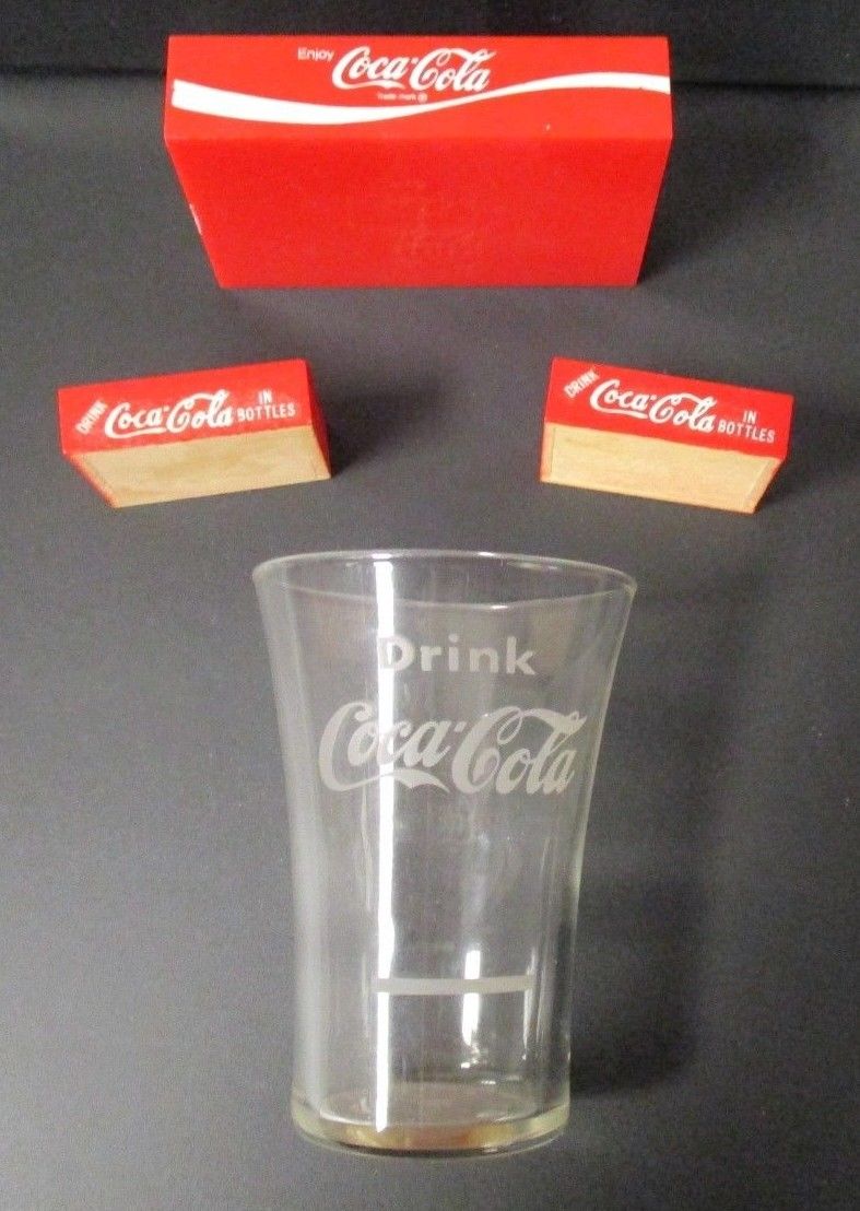 Title (ebay affiliate link): VINTAGE COCA COLA GLASS WITH THREE MINIATURE COKE CASES