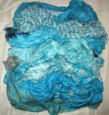 LOT PURE SILK Antique Vintage Sari REMNANT Fabrics 100 GRAMS Aqua Doll Decor NR