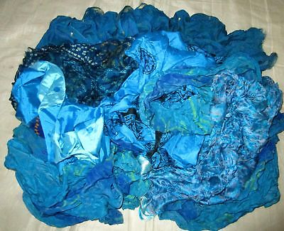 LOT ART SILK Antique Vintage Sari REMNANT Fabrics 100 GRAMS Aqua Blue CRAFT DOLL