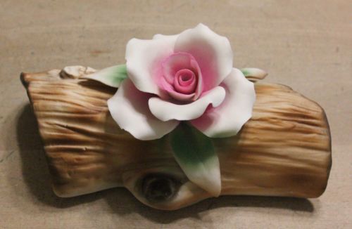Title (ebay affiliate link): Vintage Nuova Capodimonte Italy Single Pink White Rose on Log Porcelain Figurine
