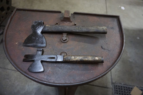 2 VINTAGE HATCHETS Axe Tomahawk Hammer Crow Bar No. 99 Bridgeport Philadelphia
