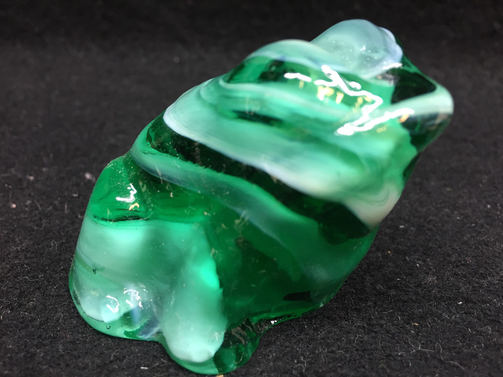 Green milk glass Frog / Toad Figurine Paperweight opaque slag swirl marble white