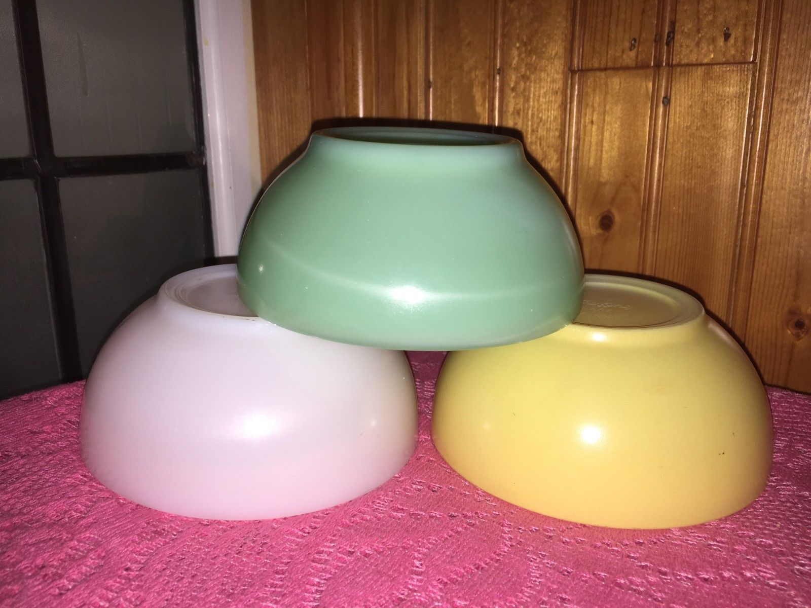 Title (ebay affiliate link): Vintage SET FIRE KING CHILI BOWLS JADE-ITE JADEITE GREEN YELLOW WHITE Milk Glass