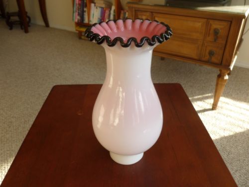 Title (ebay affiliate link): VINTAGE WHITE & PINK MILK GLASS KEROSENE LAMP CHIMNEY SHADE