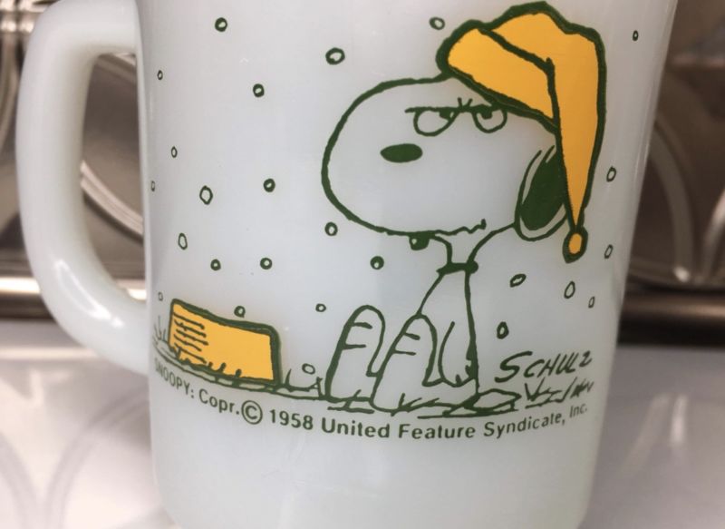 Fire King Snoopy Mug 1958 Peanuts Woodstock Schultz Snow Milk Glass