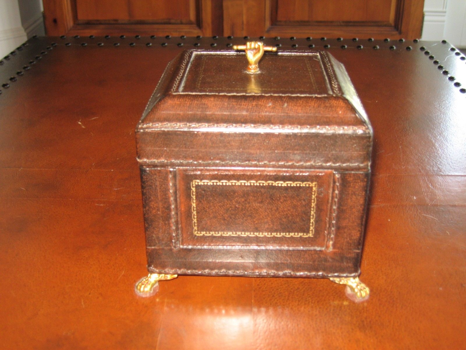 Maitland Smith Brown Leather Jewelry Box