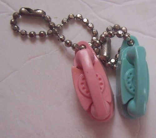 Vintage Mini Princess Blue & Pink Telephone Keychains Lights Up on Real Phones