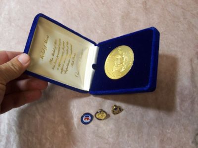 Medal Of Merit RONALD REAGAN Gold Coin Medallion & Pins