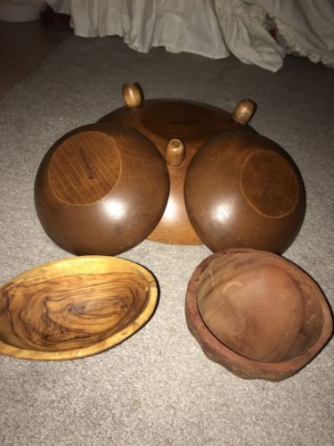 Title (ebay affiliate link): Vintage Lot Hand carved Wood Bowl Woodcraftery footed / Haiti /Teak