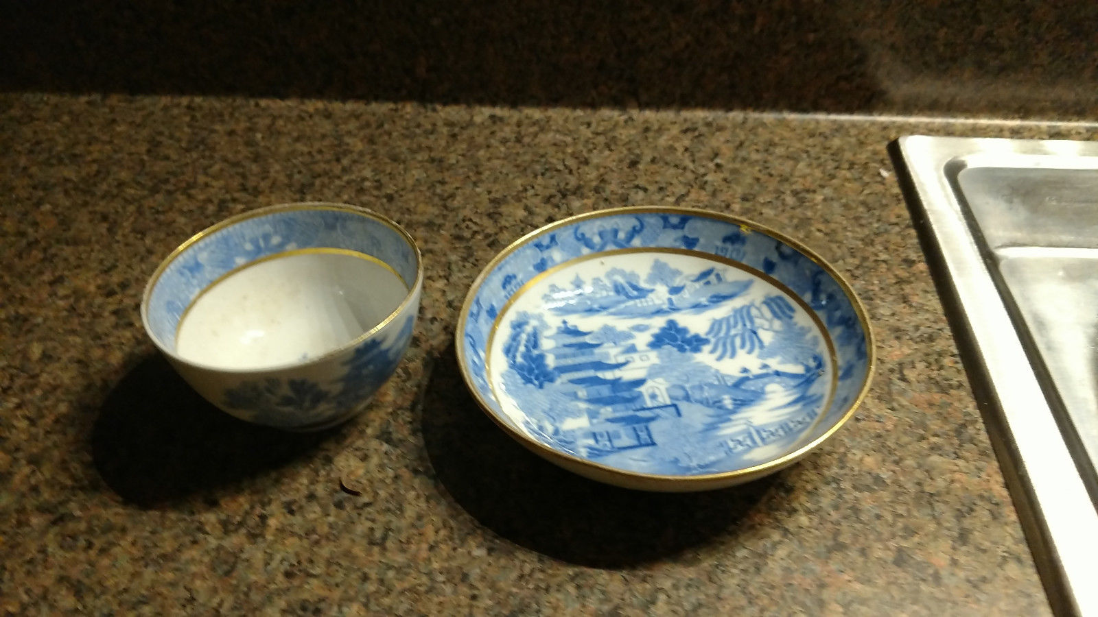 Title (ebay affiliate link): Antique Lusterware Demitasse Cup & Saucer Vintage Blue White Japanese Asian