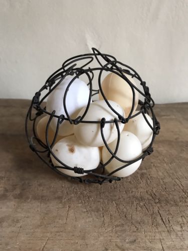 Title (ebay affiliate link): Old Small Collapsible Wire Egg Basket With Vintage Plastic Eggs Primitive AAFA