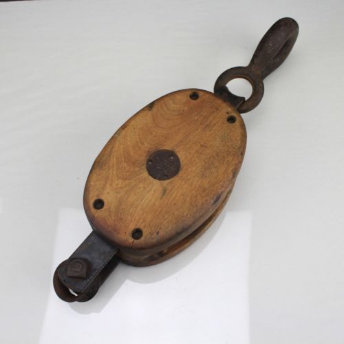Title (ebay affiliate link): Antique Primitive Decor Wood Metal Block & Tackle Pulley Anvil Brand Overall 15"