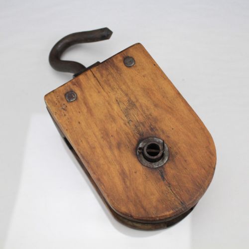 Title (ebay affiliate link): Antique Primitive Farm Decor 4" Wooden Wheel Pulley Block & Tackle Overall 10.5"