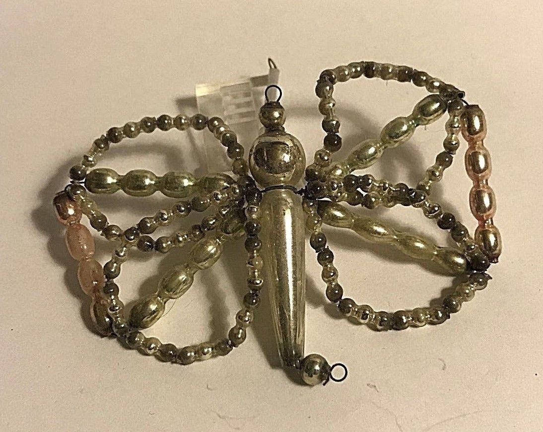 Antique Czech Style Christmas Tree Ornament BUTTERFLY Mercury Glass Beads