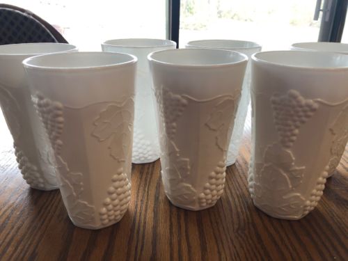 Title (ebay affiliate link): Set of 7 Vintage White Milk Glass Panel Grapes Drinking Glasses 12 oz Tumbler 6"