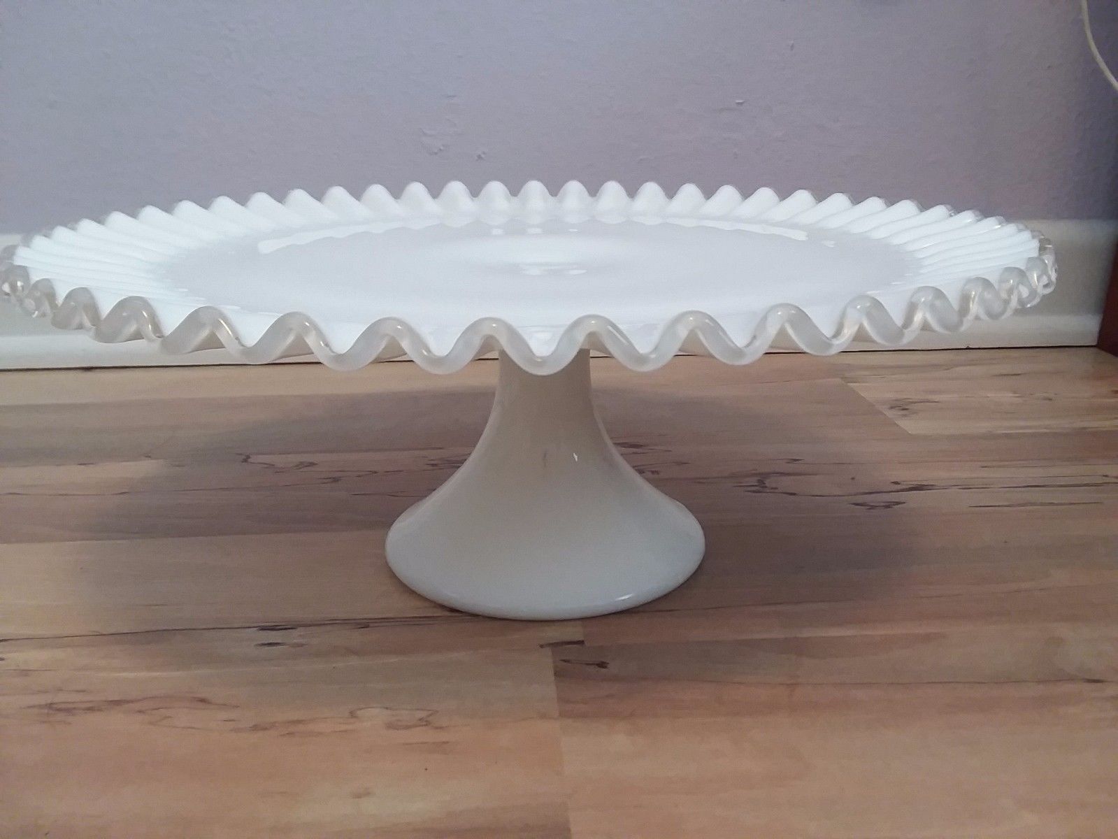 Title (ebay affiliate link): Vintage White Milk Glass Hobnail Cake Stand with ruffled edge
