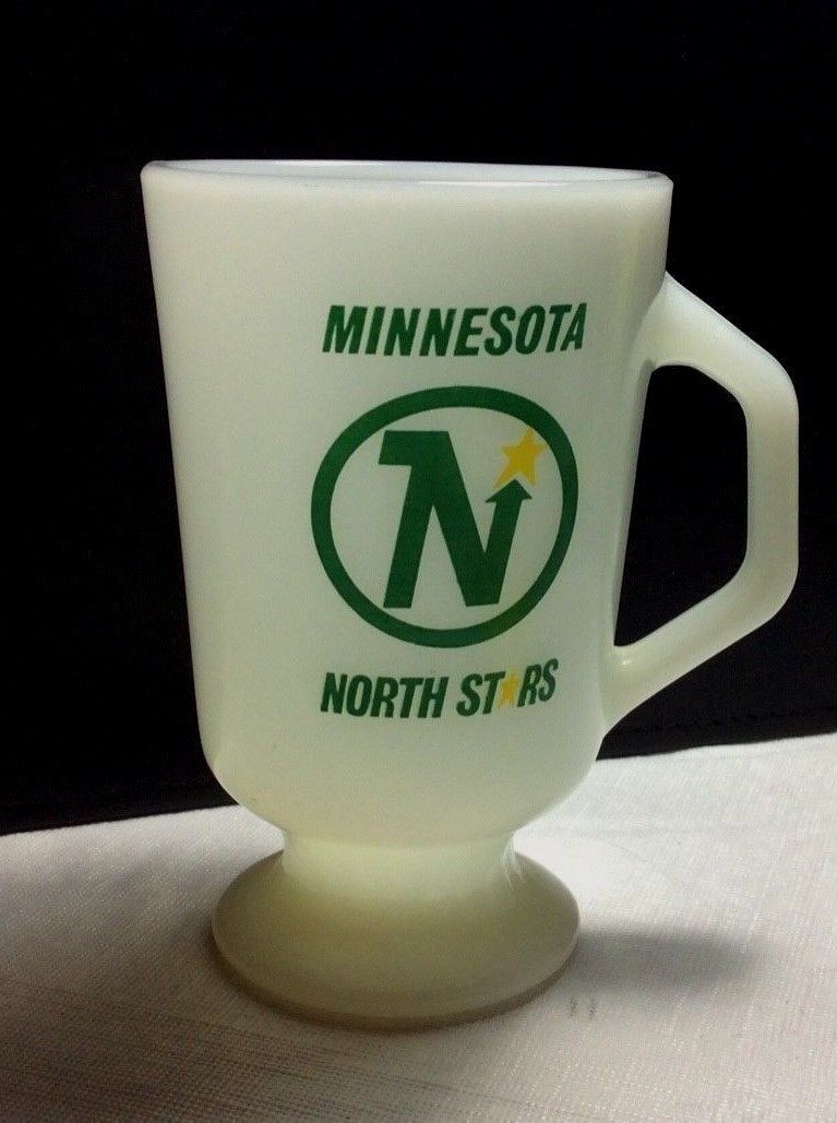 Title (ebay affiliate link): Vtg Minnesota NORTH STARS Mug Milk Glass FIRE KING Anchor Hocking NHL hockey