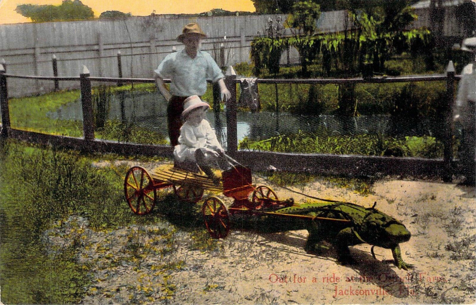 Title (ebay affiliate link): 1918 Jacksonville,FL: Alligator puling a child in a cart