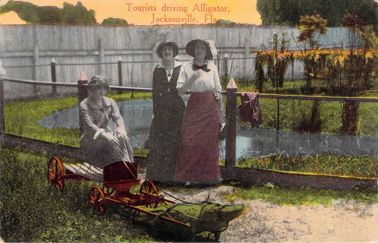 1918 Jacksonville, FL: Tourists driving alligator cart