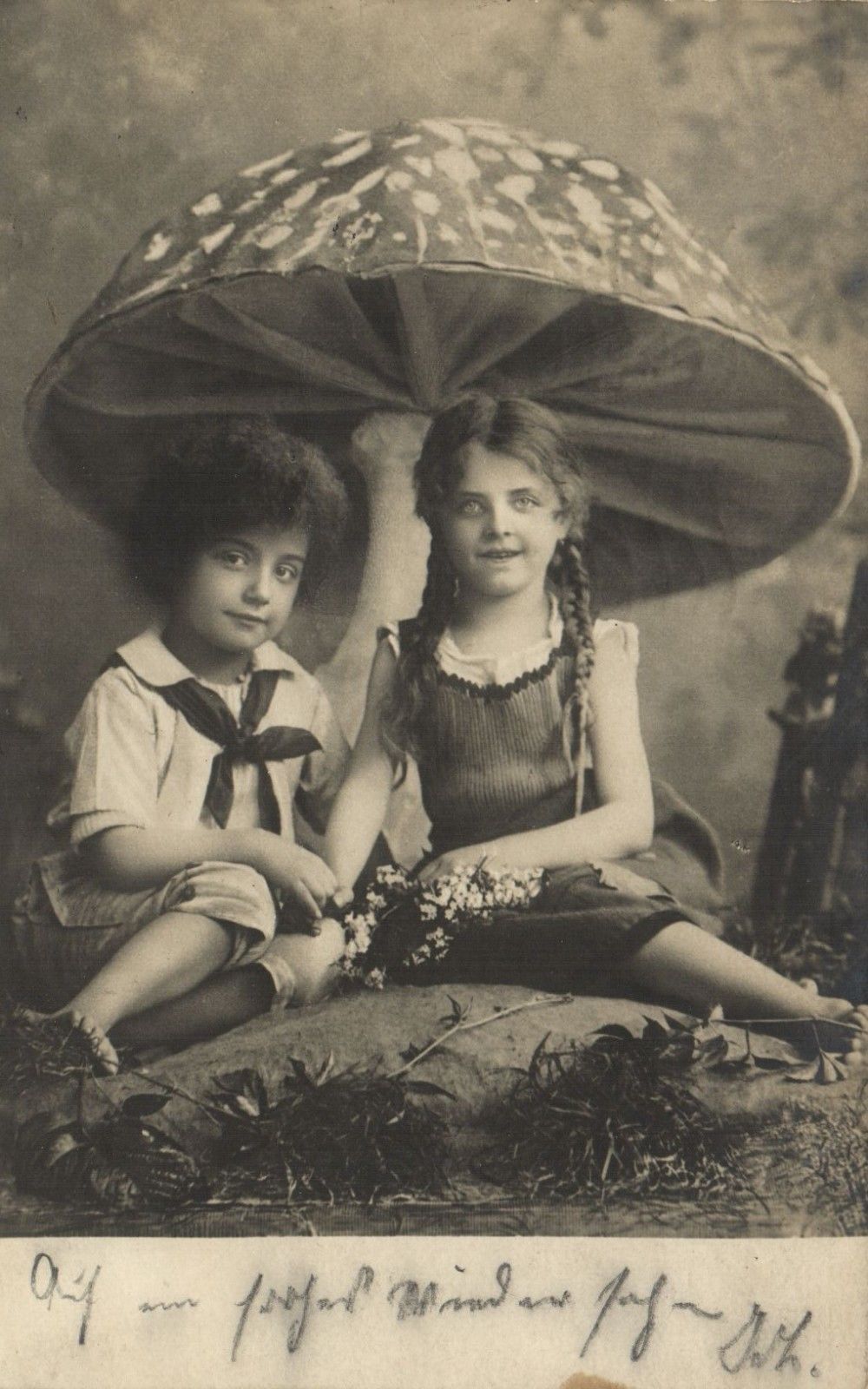 Title (ebay affiliate link): 2 girl under large MUSHROOM vintage photo postcar