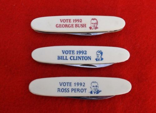 Title (ebay affiliate link): George Bush Bill Clinton Ross Perot 1992 Presidential Race Knife Taylor Set