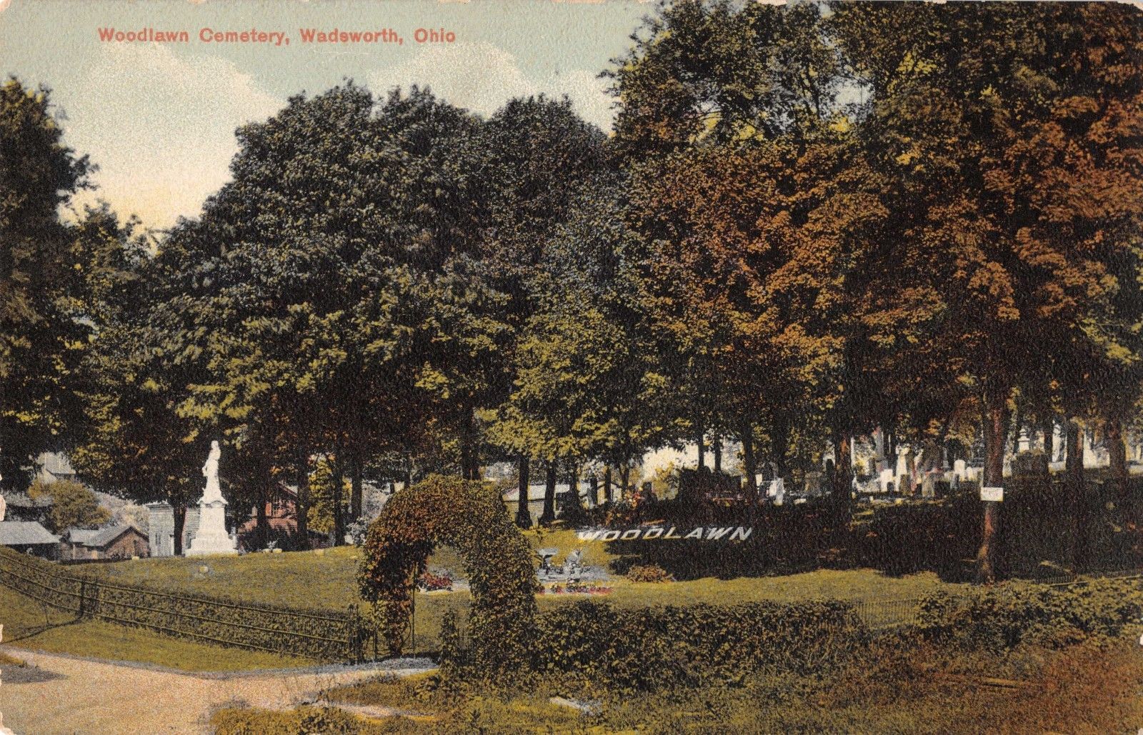 OH964 Wadsworth, Ohio, Woodlawn Cemetery, Vintage Postcard