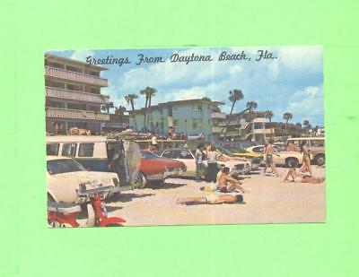 Title (ebay affiliate link): OO POSTCARD GREETINGS FROM DAYTONA BEACH FLORIDA BATHERS ON THE BEACH OLD CAR