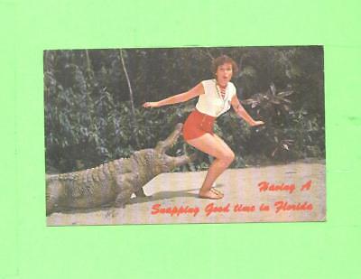 OO POSTCARD FLORIDA ALLIGATOR GATOR SNAPPING GOOD TIME WOMAN BEAUTY