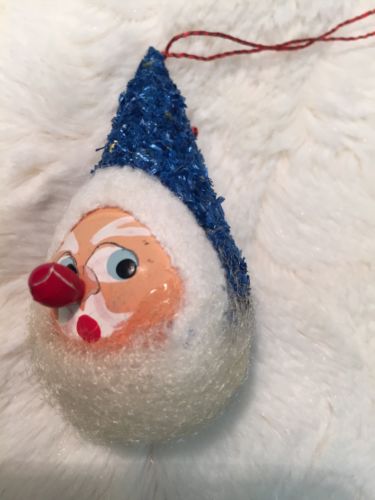 Title (ebay affiliate link): Vintage Paper Mache Santa Head Blue Cap Made In Germany