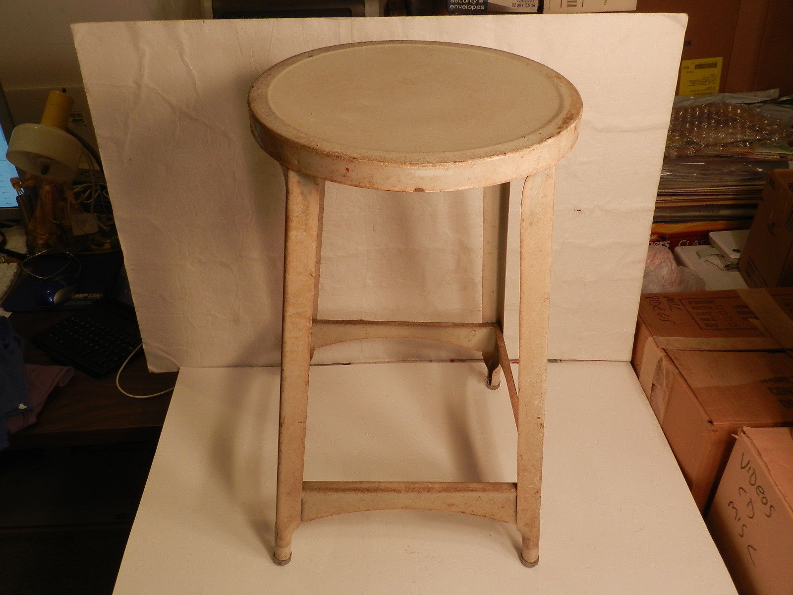 VINTAGE 20 1/2" METAL STOOL BONE WHITE
