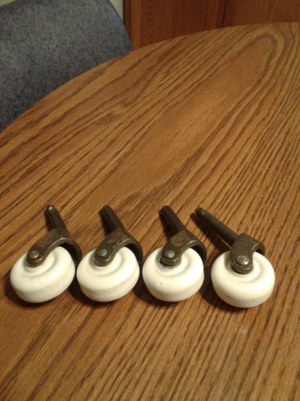 Title (ebay affiliate link): ANTIQUE "LOOK" PORCELAIN CASTERS (4)/Wheel 1 1/2" / Width 3/4"/ Shank Length 2"