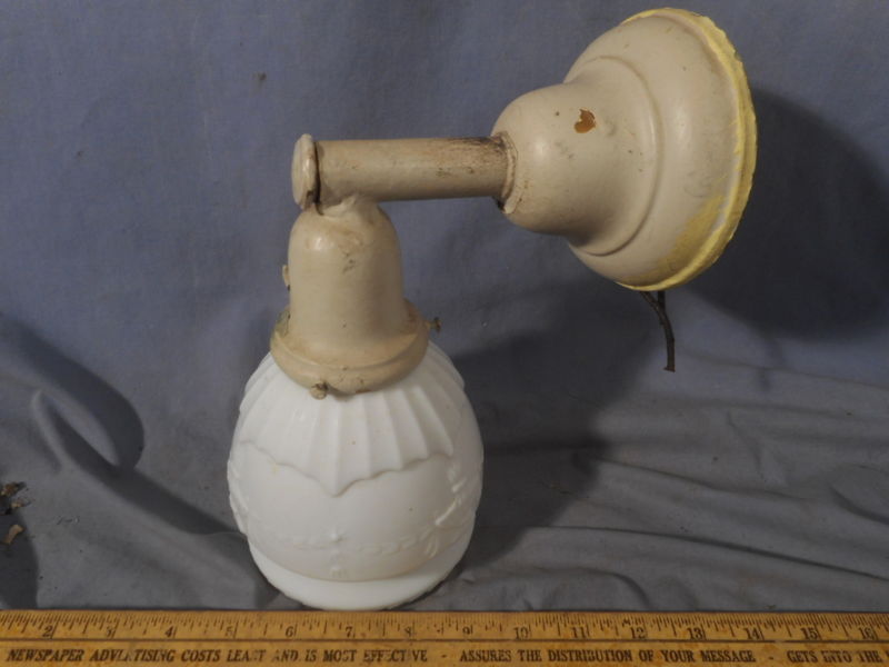 Vintage Victorian Milk Glass Shade Wall Light Brass Fixture antique estate find