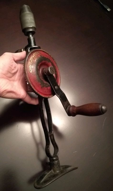 Title (ebay affiliate link): Vintage MILLERS FALLS BREAST SHOULDER HAND CRANK DRILL NO 2100 1915 old tools