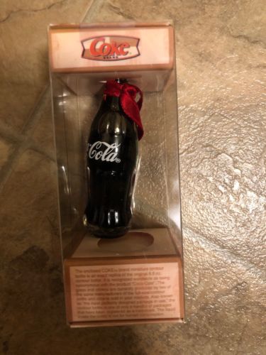 Title (ebay affiliate link): 1961 HADDON SUNBLOOM SANTA MINIATURE COCA - COLA GLASS BOTTLE ORNAMENT FULL
