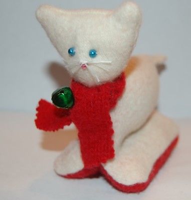 Title (ebay affiliate link): Pincushion Primitive Felted Wool White Christmas Rocking Cat Pin Cushion Make Do
